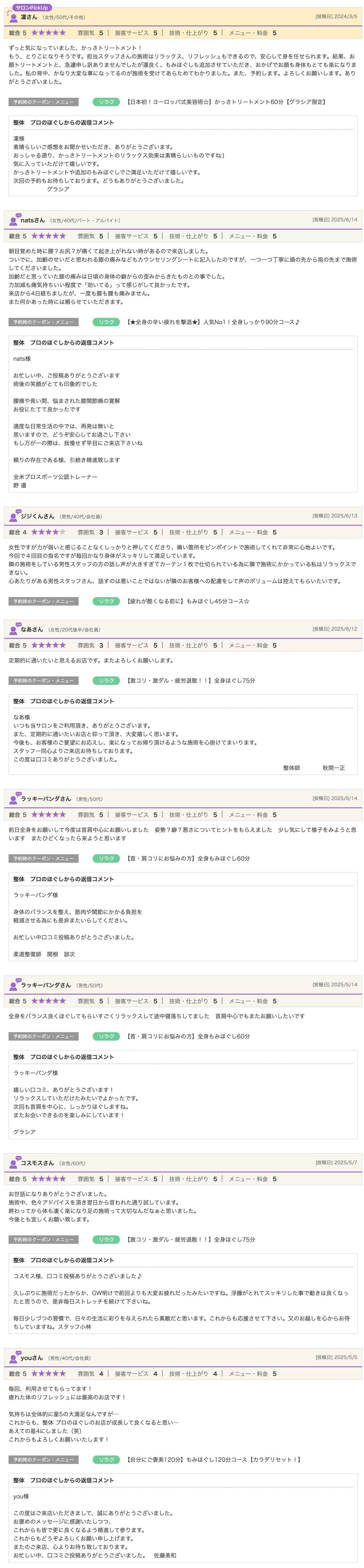 プロのほぐしをご利用いただいた、お客様から寄せられた声をご紹介します。